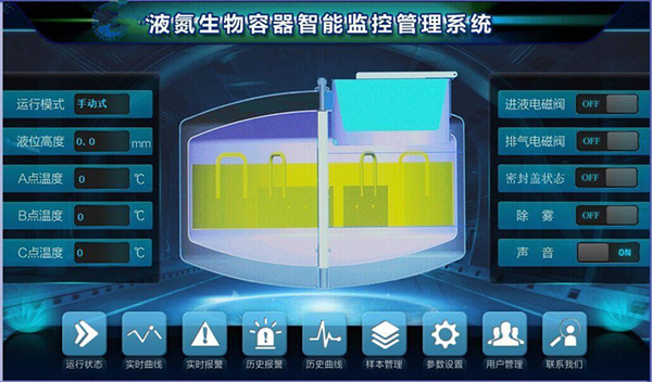 1、液氮罐監(jiān)控:實(shí)時(shí)采集低位、高位溫度,檢測(cè)液位高度;根據(jù)液位值和溫度值自動(dòng)開關(guān)進(jìn)液電磁閥;發(fā)送報(bào)警信息。